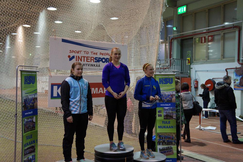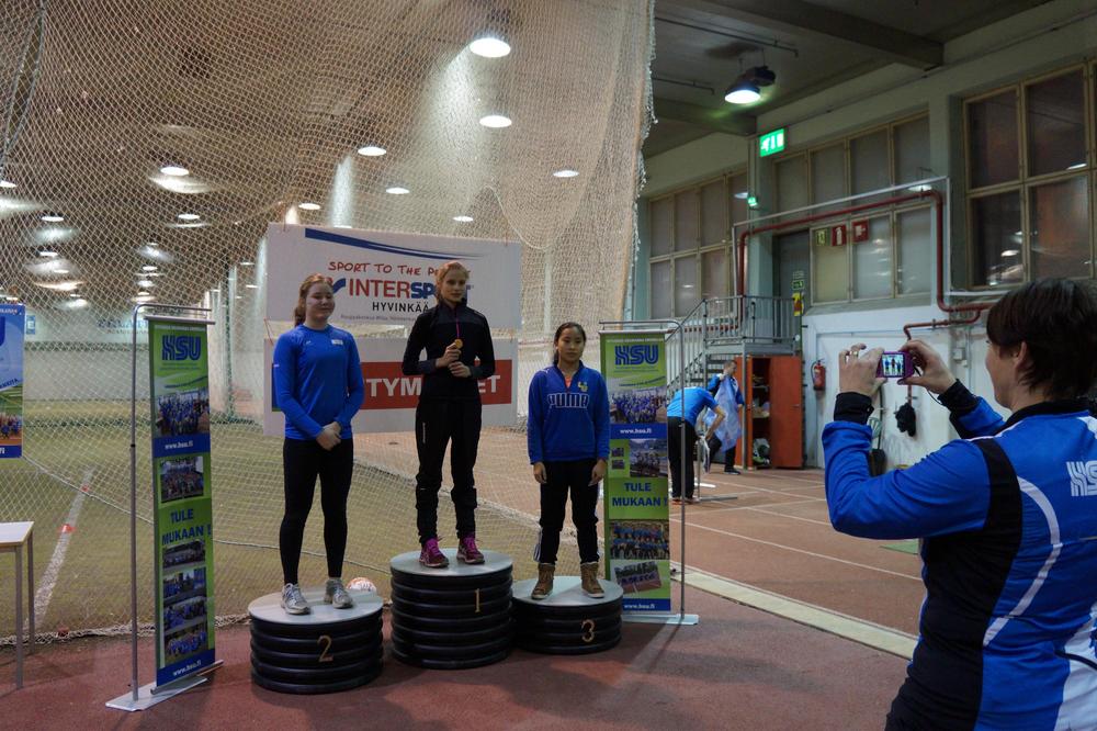 Kovimmasta yllätyksestä vastasi sen sijaan 400metrin aitajuoksijana tunnettu Tiia Ylä-Peräinen joka nappasi avauslajista korkeushypystä peräti lajivoiton tuloksellaan 129cm! 3-loikka ei sujunut enään aivan samaan malliin ja Tiia putosi kolmanneksi kokonaispisteissä tuloksellaan 6,88. Pituushypyssä Tiia jälleen sisiintui ja paranteli entistä ennätystään (231cm) selkeästi lukemiin 239cm ja pokkasi samalla kokonaispisteissä pronssia!