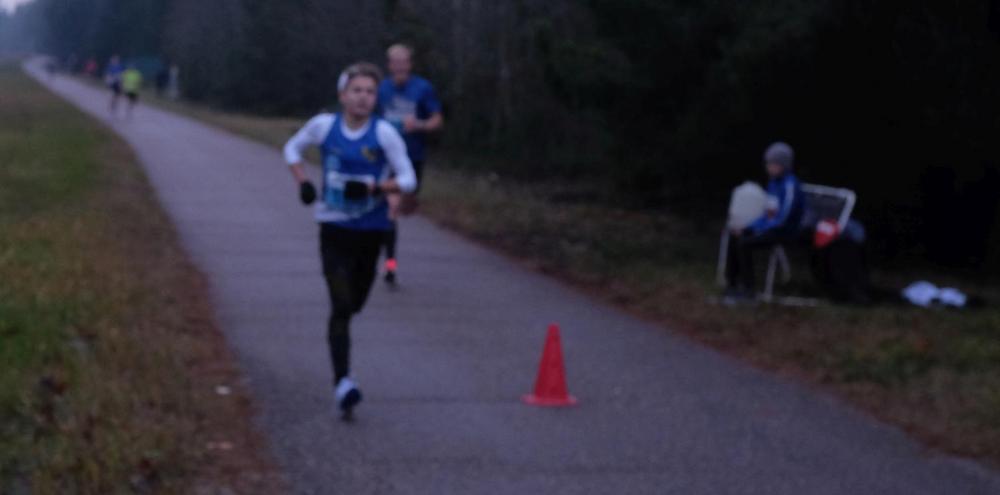 Kilometrin matkalle, 9- ja 11-vuotiaiden tyttöjen ja poikien lähdössä starttasi viisi kohtalaisen saman vauhtista juoksijaa. Sarjojensa nopeimmat Niilo Järvinen ja Ellen Niskala joutuivat taivaltamaan matkan ilman kiriapuja. Niilon loppukiri paljasti, että matkavauhdissa olisi ollut kiristämisen varaa, mutta tälläkin vauhdinjaolla yksin juostuna komea aika 3.48. Yksin sai taivaltaa myös Lahden Ahkeran Emilia Jousimaa, mutta reittiennätyksistä heikoimpana keikkunut naisten viiden kilometrin ennätys meni uusiksi yli minuutilla. Nyt ennätys kirjataan 17.51.