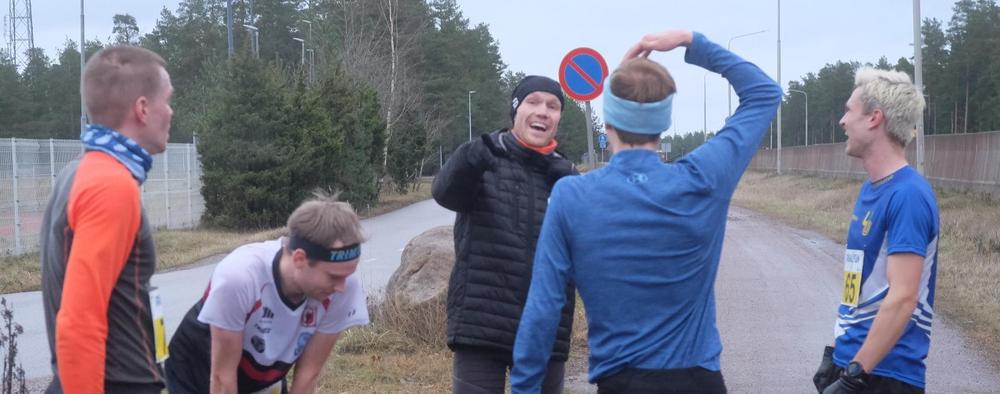 Osakilpailussa nähtiin toinenkin sopuisa maaliintulo, kun M17- ja M50-sarjan juoksija tulivat maaliin toverillisesti kylki kyljessä. Mahtoivatkohan olla samaa ruokakuntaa ja olisiko kyseessä yhteinen kunnonkohotusprojekti? Hölkkien leppoisaan maailmaan tällainen tietysti sopii, vaikka on ristiriidassa urheilun syvän eetoksen kanssa: urheilijan on aina yritettävä parhaansa, muussa tapauksessa on kyseessä epäurheilijamainen käytös. Sarjakilpailun suhteen esiin nousee toinenkin ongelma: jos tasapelin tekijät juoksevat samassa sarjassa, on teossa jo tulosmanipulaation makua, kun jaetusta sijasta annetaan samat korkeat sijoituspisteet. Tällaisesta ei lauantaina varmaankaan ollut kyse, mutta Länsi-Uudenmaan Urheilijoiden on syytä selkeyttää sääntönsä tämän suhteen tulevaisuutta ajatellen.