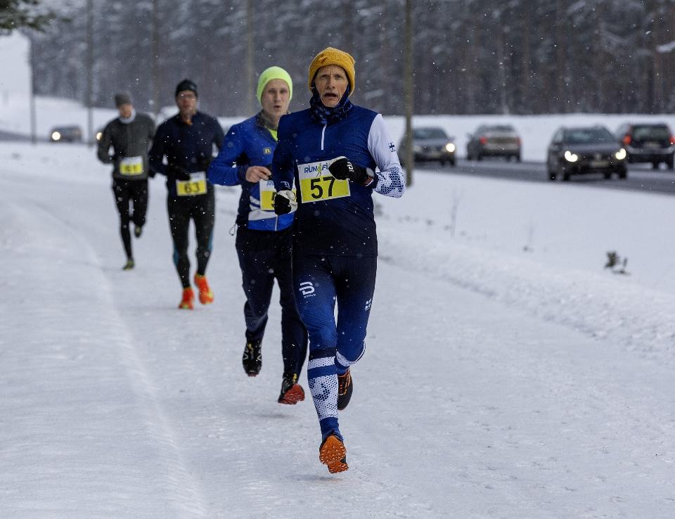 Kovan juoksukisaamisen sijaan useimmat olivat liikkeellä "sarjakilpailun sitkeydellä ja ulkoilun ilolla". Osallistujia yhteensä 31, mikä vastaa tyypillistä osallistujamäärä, silloin kun näihin sydäntalven kisoihin osuu pakkaskeliä ja vauhtia syövät alustaolosuhteet. Kymmenen kilometrin matkalla miehiä oli sentään puolimatkassa tiivis neljän rypäs, jonka oli vielä selvitettävä keskinäiset voimasuhteensa ennen maaliintuloa. Muilla matkoilla nähtiin muutama sarjarajat ylittävä kiripari, mutta pääosin meditatiivista yksintaivallusta.